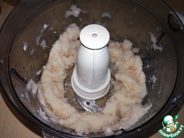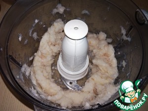 Рыбу, порезанную на куски, вместе с чесноком и салом помещаем в блендер и измельчаем, добавляем при этом соль.