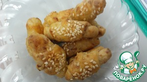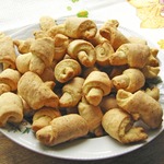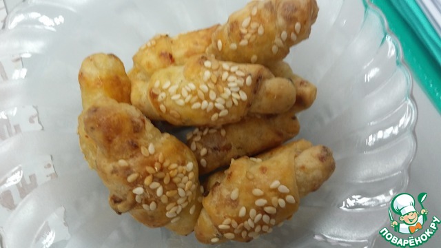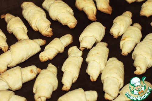 Творог.Мини рогалики просто отличные.Мы их с пивом и пол вазы уже нет.Рекомендую..