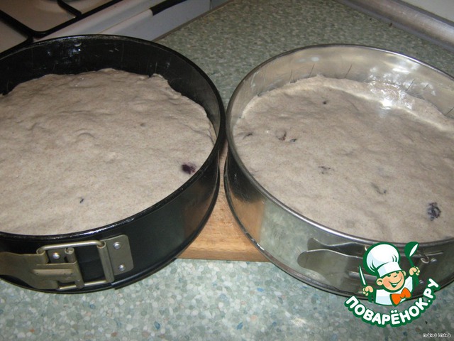 Когда тесто вырастет до краев формы, ставим его в хорошо разогретую духовку (я фотографировала немного раньше). Через 20 мин. огонь сбавляем до минимального и печем еще 40-45 минут.