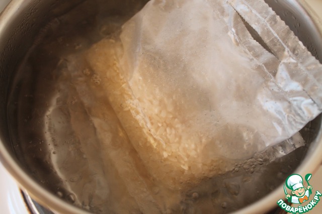 Доводим воду до кипения, кладем в нее пакетик.