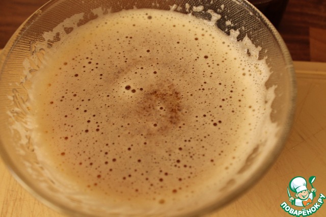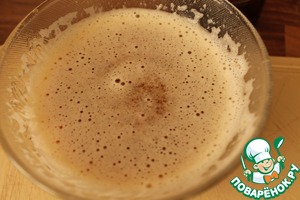 В желтковую массу вливаем половину горячего молока, взбиваем венчиком.