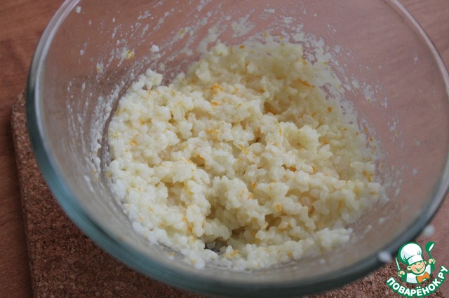 Тем временем рис сварился. Разрезаем пакетик, достаем рис и хорошо перемешиваем его с апельсиновой цедрой, чтобы ее аромат впитался.