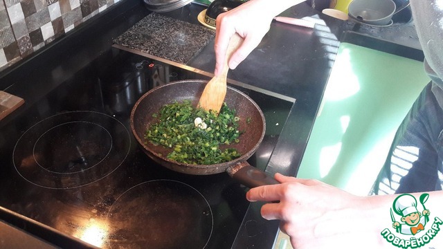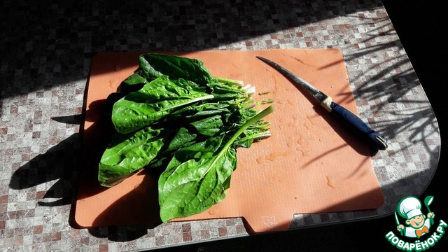 Растапливаем на сковороде сливочное масло, высыпаем туда шпинат, обжариваем, постоянно помешивая. Соль, перец по вкусу. В готовый шпинат добавляем мелко порезанный чеснок, отставляем пока в сторону. Трем сыр на крупной терке