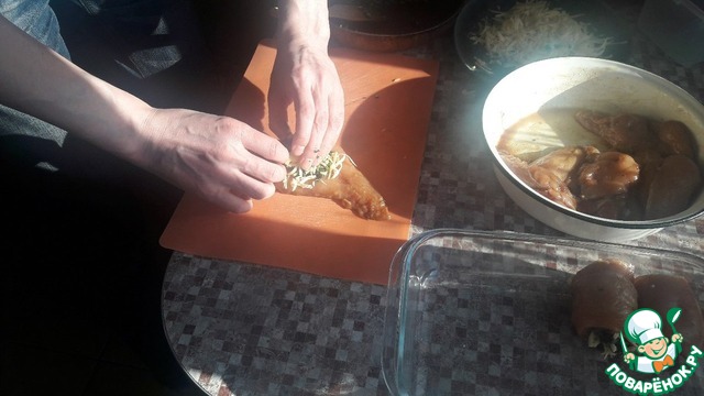 Когда курица замариновалась, мы готовы к финальной стадии - фаршированию.