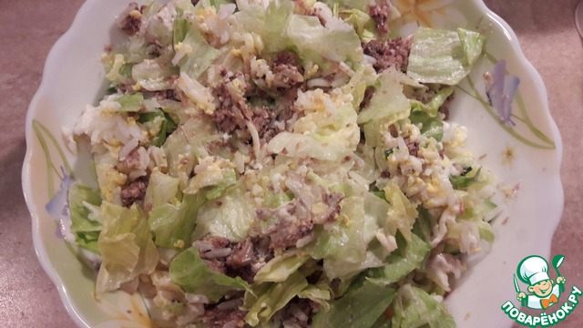 Шпроты размять вилкой. Смешать рис, яйцо, шпроты, огурец и листья салата. Заправить сметаной с добавлением 1 ст л масла от шпрот