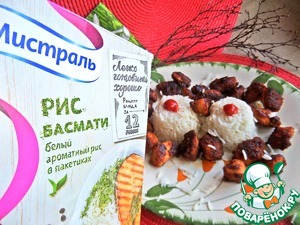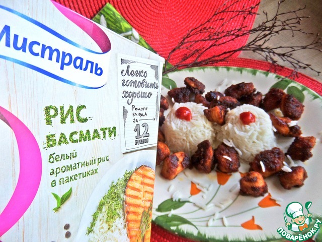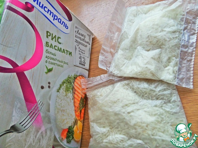 Поставить вариться рис Басмати из рассчёта пакетик на едока.