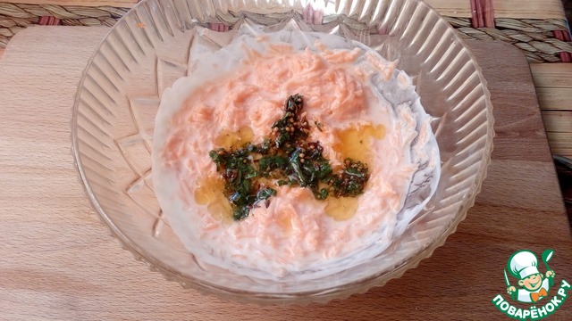 Остудите и добавьте приготовленные специи в йогурт с морковью.