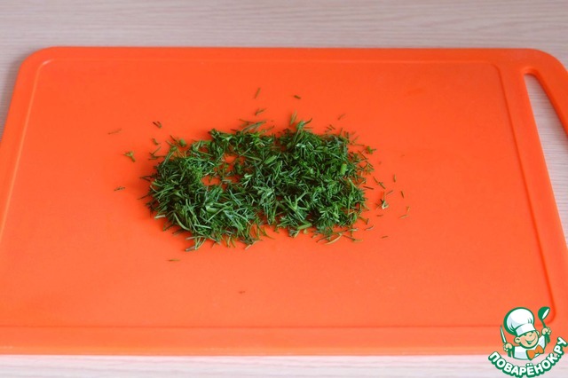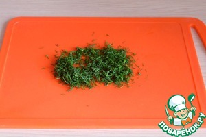 Нашинковать свежую зелень укропа.