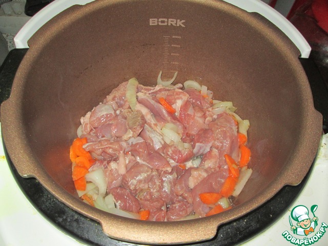 Выложить в мультиварку вместе с луком репчатым. Чаще всего я лук и морковь не кладу, но сегодня захотелось.