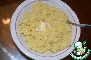 Наши 25 минут прошли. Вынимаем пакетики с пшеном, даем им стечь, затем выкладываем пшено в тарелку и добавляем сливочное масло, оно придаст пшену сливочную нежность.