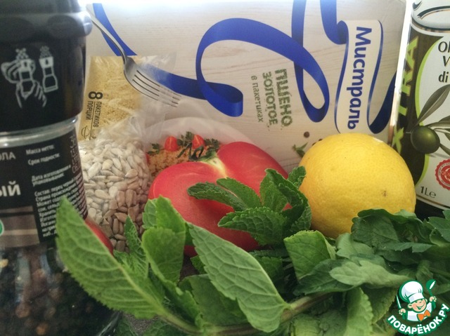 Ингредиенты для «Салат с мятой, пшеном и семечками»: