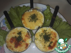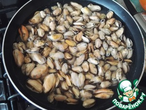 Теперь "собираем" жюльен. В кокотницы выкладываем мидии, примерно до половины.