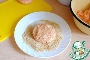 Сформовать биточки, обвалять в панировочных сухарях.