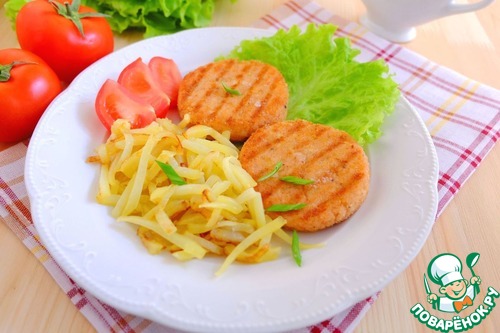 Обжарить биточки с двух сторон на среднем огне до золотистой корочки.
