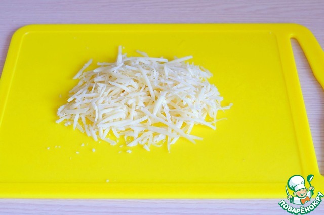 Твердый сыр (70 гр.) натереть на мелкой корейской терке.