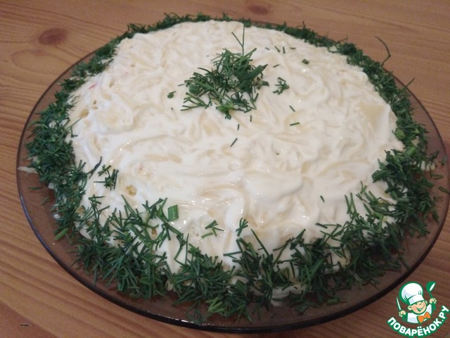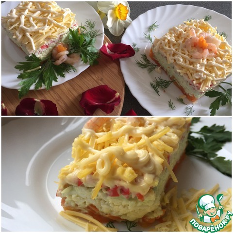 Отличным дополнением к праздничному застолью - слоеный салат "Крабовый".