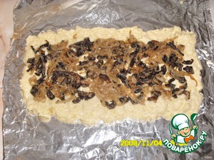 Пюре выложить на смазаную маслом фольгу, сверху выложить начинку.