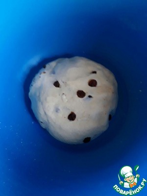 Теперь вмешиваем в тесто предварительно запаренный и просушенный изюм.