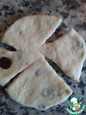 Теперь придаём булочкам форму. Я просто раскатала каждый шарик и сделала на нем четыре надреза.