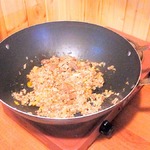 Взять жир из тушенки и разогреть на сковороде, обжарить лук и морковь.