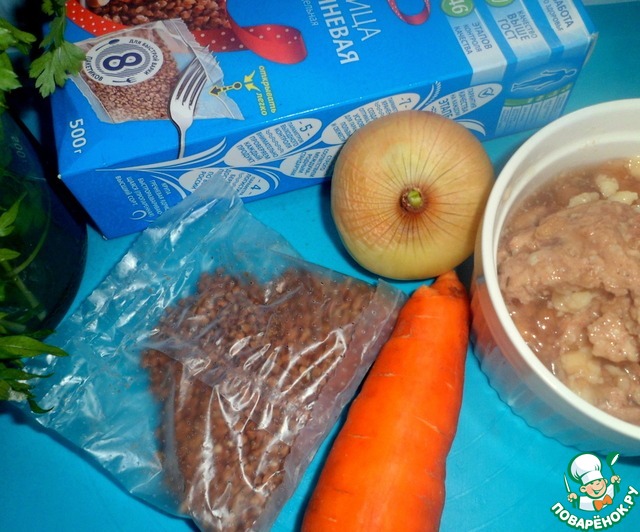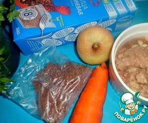 Ингредиенты для «Гречка с тушёнкой по-дачному»: