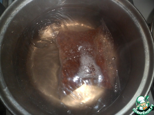 Отваренный пакетик с гречкой вынуть из воды и подвесить на несколько секунд, чтоб стекла жидкость.