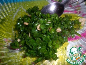 Нарезать мелко зеленый лук и чеснок.