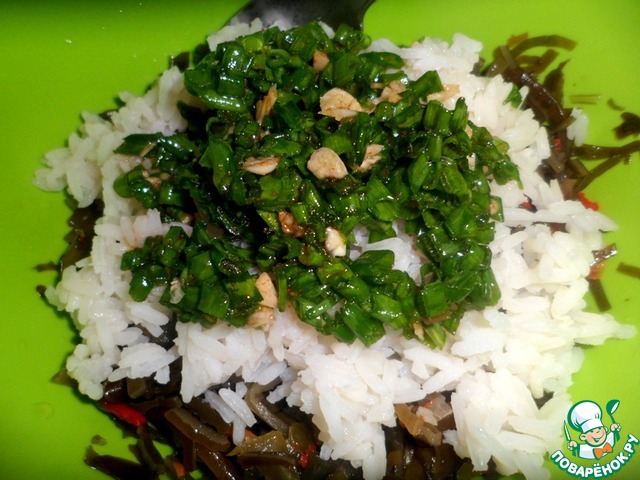 Салат с рисом и морской капустой