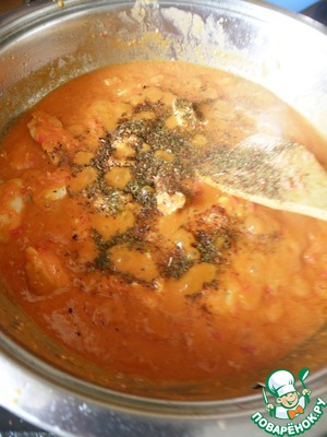 - Пряности (я брала по щепотке базилика, майорана и петрушки) — по вкусу