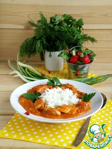 Ароматный соус с интересной арахисовой ноткой отлично подходит к куриному филе и подчеркивает нежность риса басмати. Блюдо готовится быстро и получается вкусным и легким.