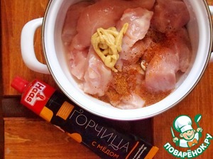 Затем добавить изумительную горчицу с мёдом ТМ Haas, приготовленную исключительно из натуральных зерен, которая представляет собой своего рода пикантный соус-барбекю и идеально подходит для куриного мяса.