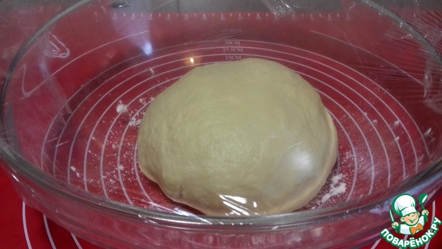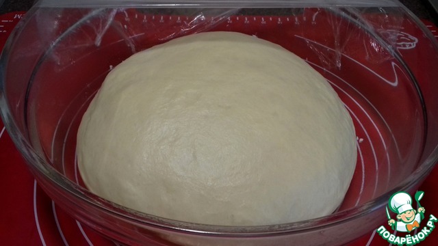 Отдохнувшее тесто вымесить до гладкого и однородного. Тесто накрыть и оставить в тепле до удвоения в объеме.