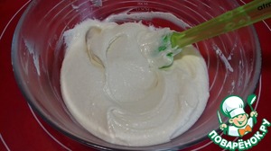 Для начинки смешать сметану, сахар, растопленное сливочное масло (оно придает приятный сливочный вкус) и муку.