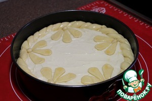 Выложить сметанную начинку на пирог, аккуратно разровнять ее.