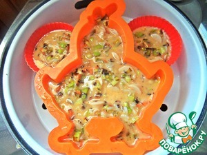 В чашу мультиварки налить воду и установить решётку, на неё формочки. Включить программу "на пару".