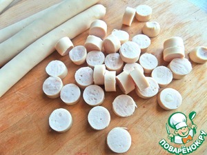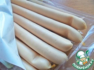 Колбаски я использовала натуральные, без красителей, в которых 80% мяса.