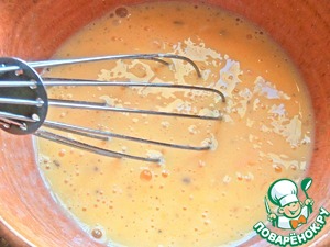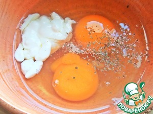 Для омлета смешать яйца со сметаной, солью и базиликом.