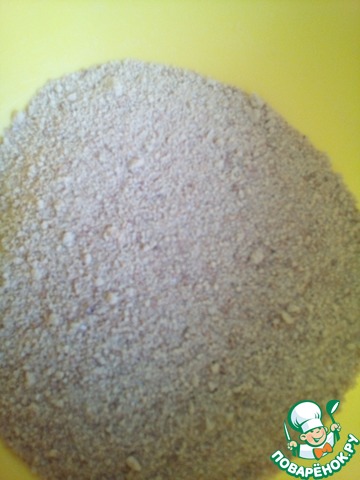 Оставалось у меня немного засохших пряников, несьедобное овсяное печенье и пара вафель. Все смешала вместе и далее по рецепту.