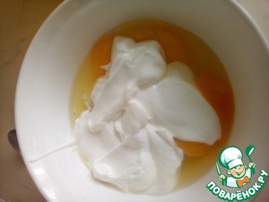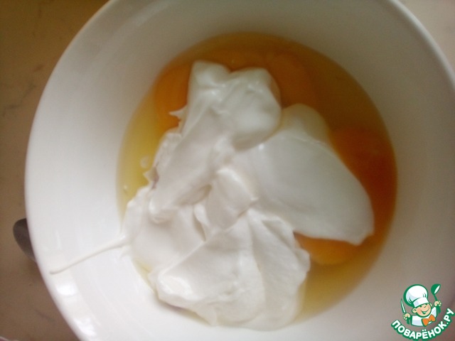 • В отдельную посуду разбить яйца добавить сахар и сметану. Размешать до однородности. Попробуйте смесь на сахар, возможно потребуется чуть больше или меньше сахара! Зависит от вашего вкуса и используемых пряников, не забывайте, что добавляем вишню, а она с кислинкой, поэтому смесь должна получится более сладкой.