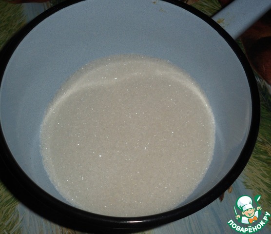 Поставить на маленький огонь, постоянно помешивая, пока не растворится сахар