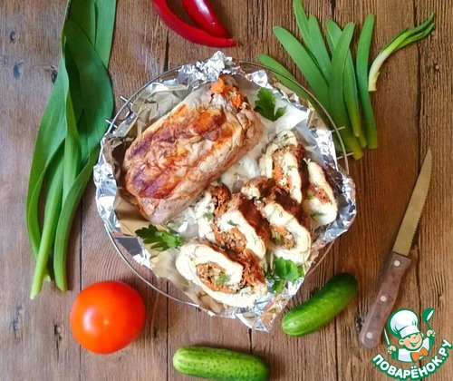 Курица на гриле - это всегда вкусно! А рулет из курицы, замаринованной в специальном соусе, с интригующей начинкой - точно вкусно вдвойне! Только посмотрите, какая аппетитная корочка образуется снаружи! А какая яркая и сочная начинка получается внутри!