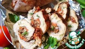 Рецепт «Куриные рулеты с разноцветной начинкой»: