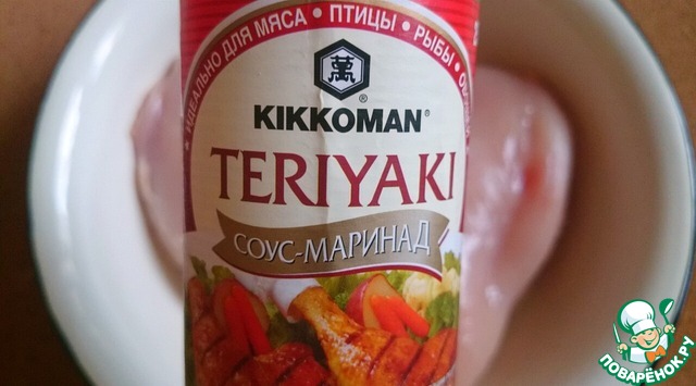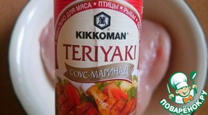 Добавляем к курице соус-маринад Teriyaki, даем постоять полчаса.