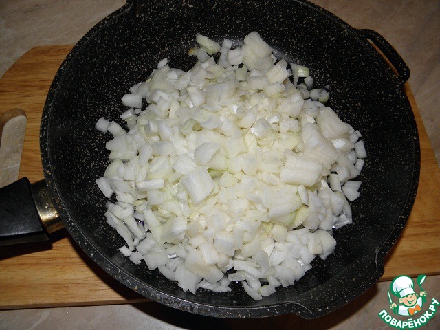 Лук мелко нарезать ( кол-во лука на ваше усмотрение, мы любим чтобы было много ).