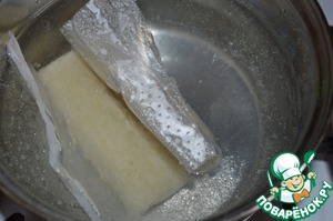 В кастрюлю налить 1 л. воды, добавить соль и дать закипеть.