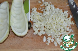 Кабачок разрезать вдоль и выскрести мякоть.