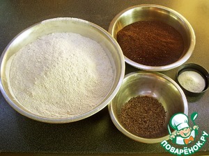 Смешиваем все сухие продукты - муку, солод, разрыхлитель и тмин.