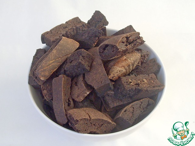 Полностью высохшие сухарики отправляем в духовку, где обжариваем их при достаточно высокой температуре (> 200 град Ц) до заметного потемнения и (или) появления горелого запаха.