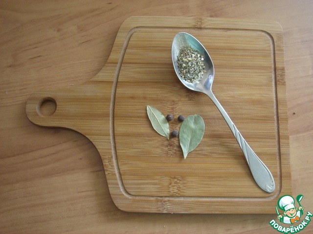 В конце готовки минуты за 3 кладём специи. Я взяла специи для овощей и лавровый лист. Положите свои любимые специи.