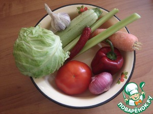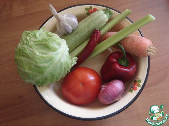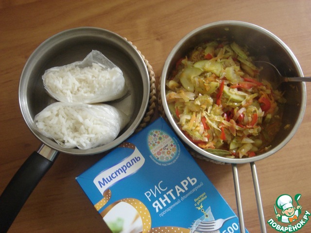 Овощное ассорти с красным перцем чили, молодой капустой, яблоком, сельдереем, кабачком, болгарским перцем и помидором-можно сказать, что уже самостоятельное блюдо, а с рисом на даче-сытное и вкусное. Готовится быстро, пока варится крупа!